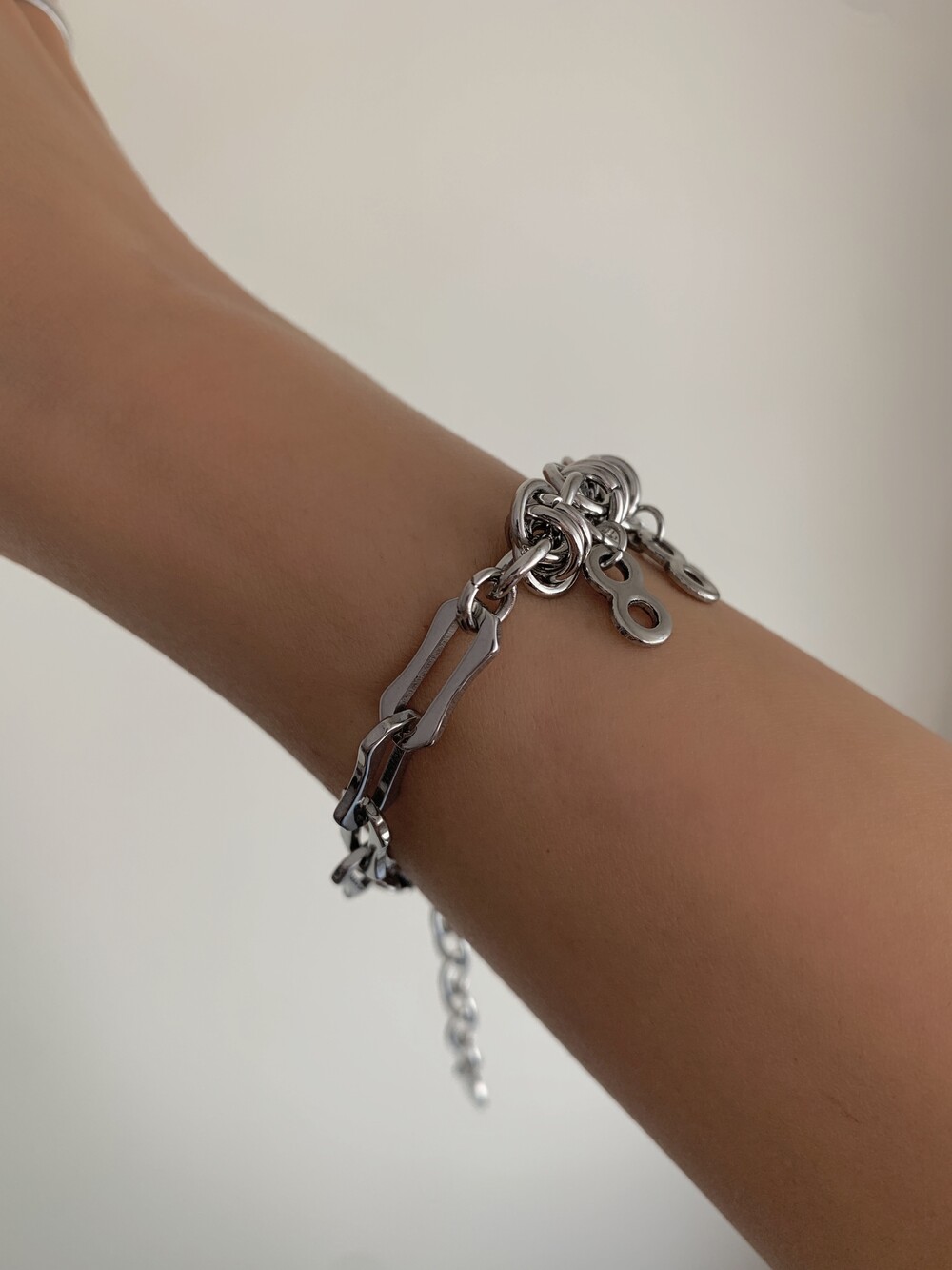 - 뼈다귀 모양의 체인과 유니크한 체인의 레이어드로 멋스러운 제품