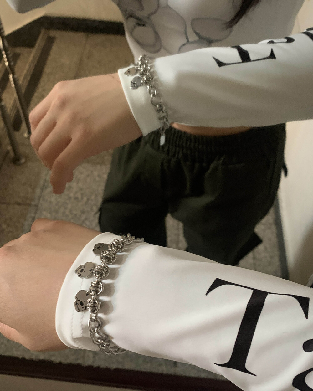 귀여운 해골 펜던트가 주는 키치한 무드의 브레이슬릿