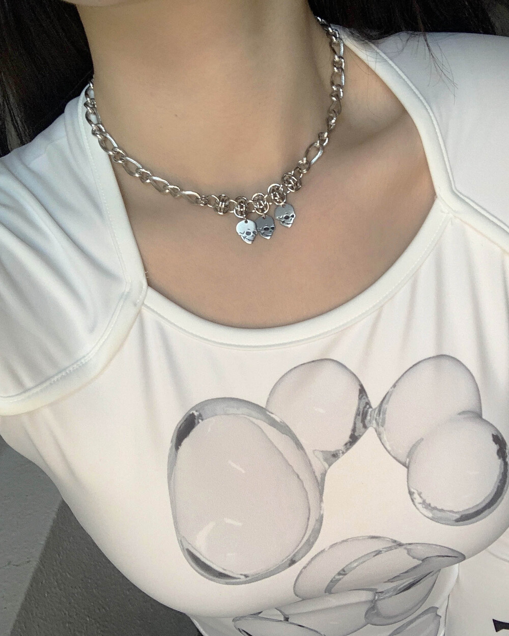 - 키치한 해골 펜던트가 주는 독특한 무드의 네크리스