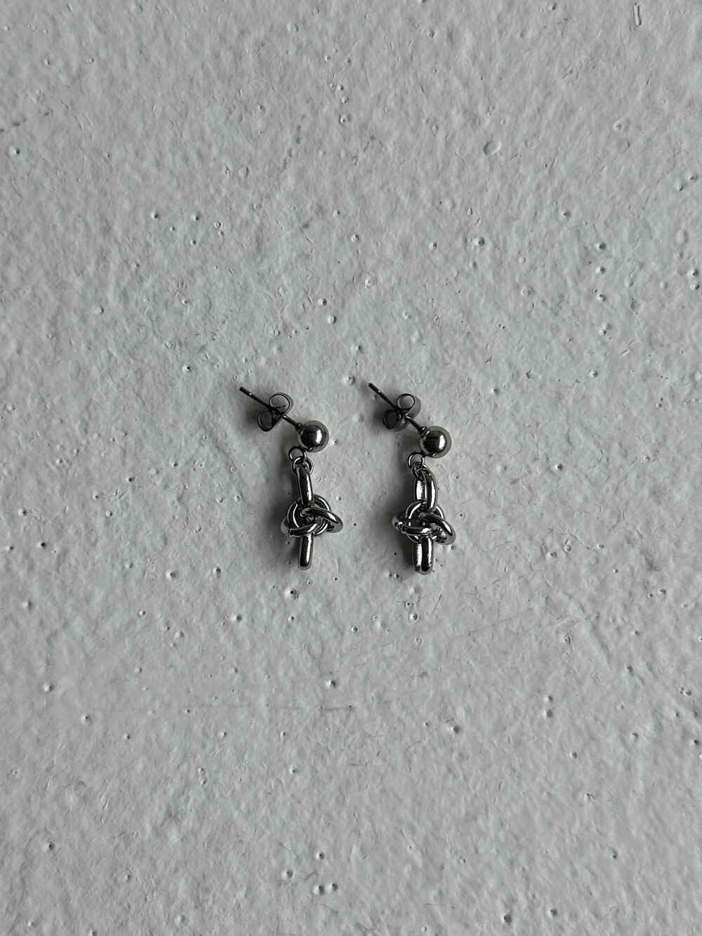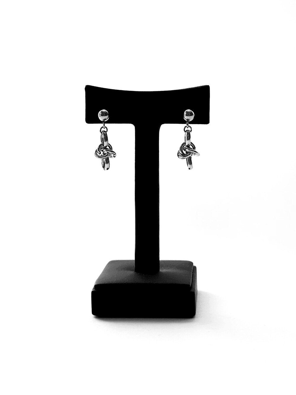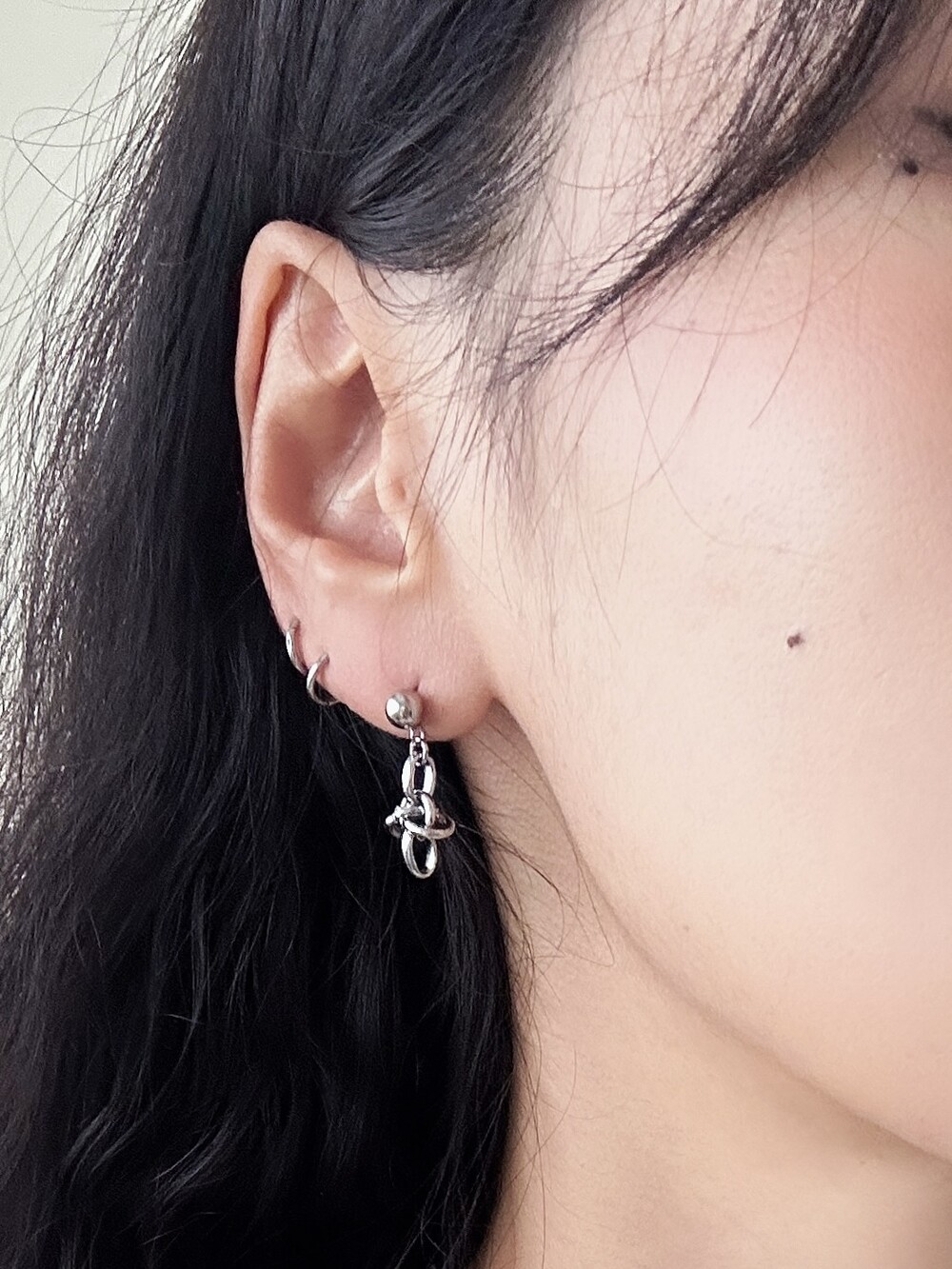작은 링들이 엮여 매듭처럼 연결된 드롭 디자인 이어링