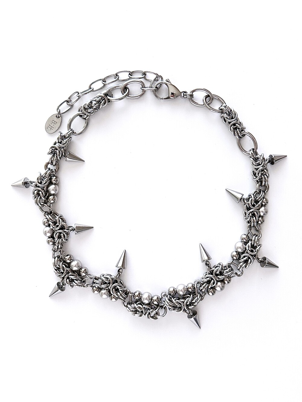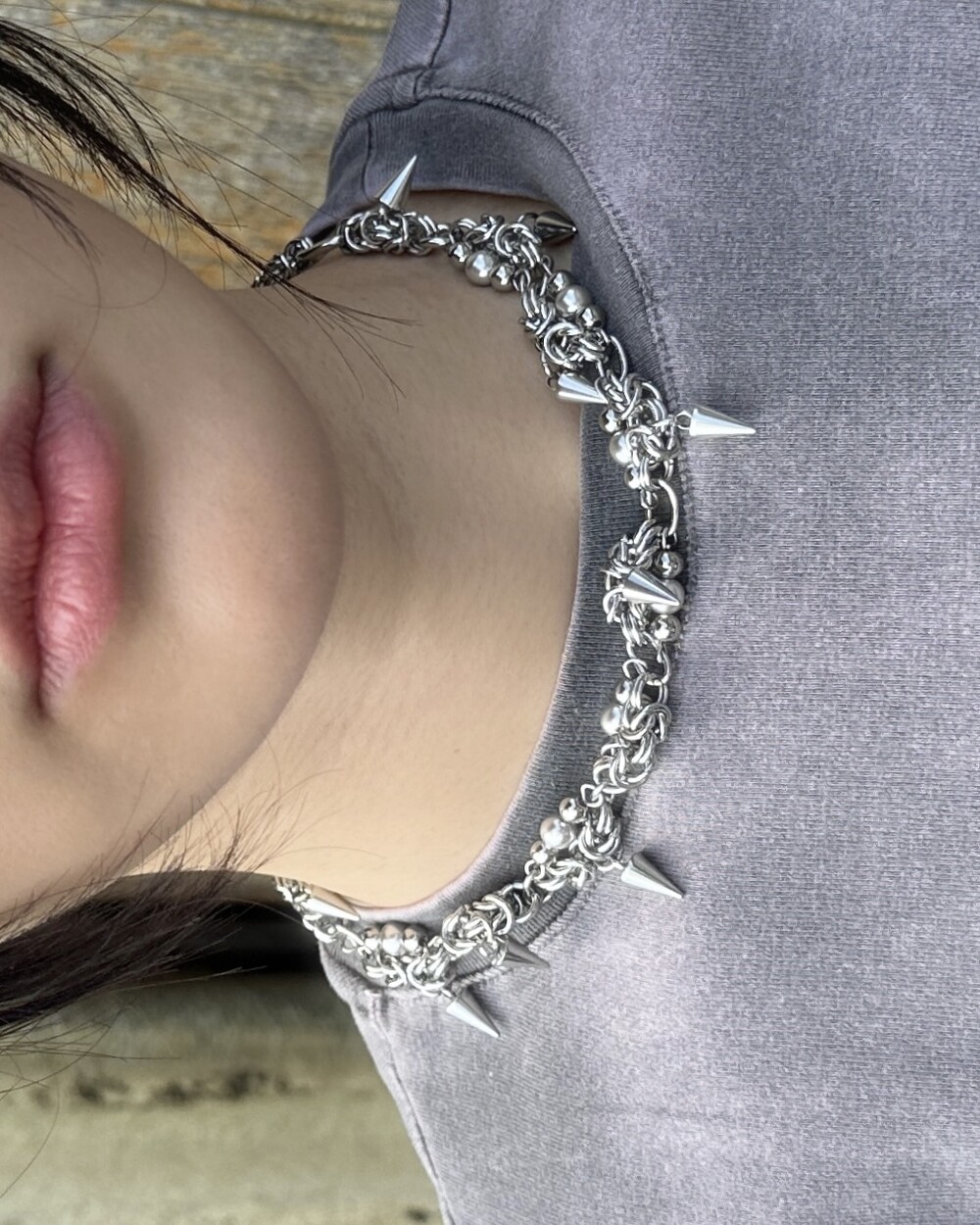 수작업 스테인리스 스틸 체인메일과 핵진주를 연결하여 엮어 디자인