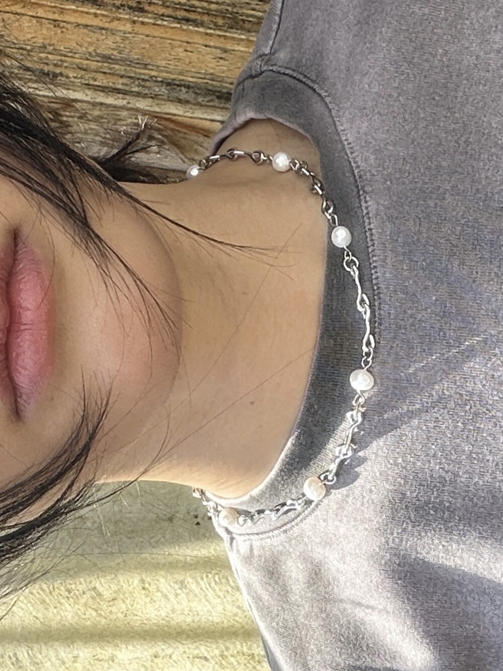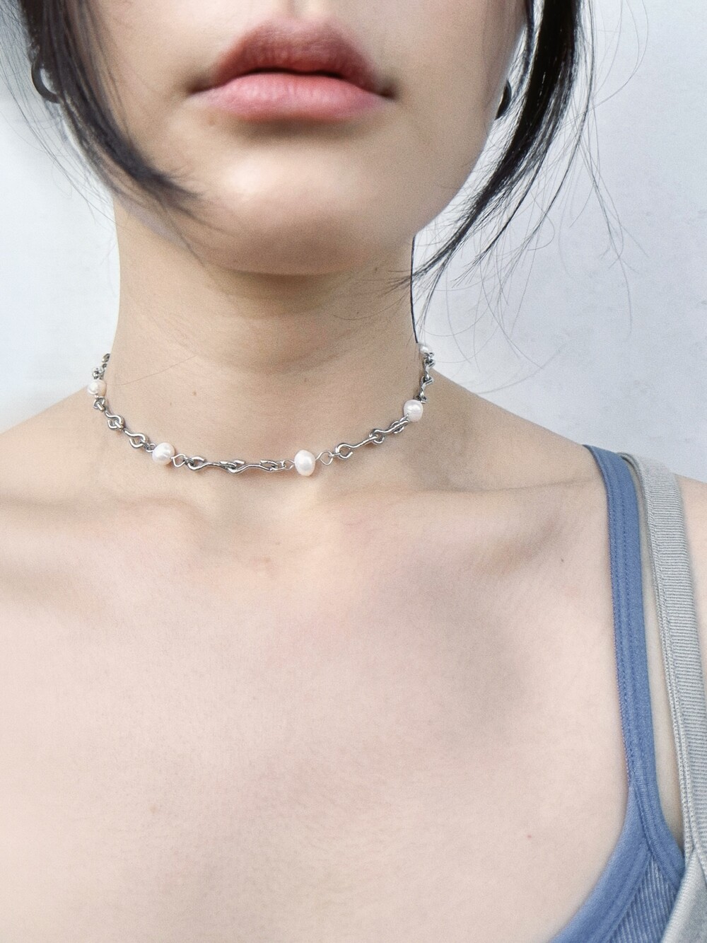 - 담수진주와 스테인리스 소재 체인을 엮은 매력적인 네크리스