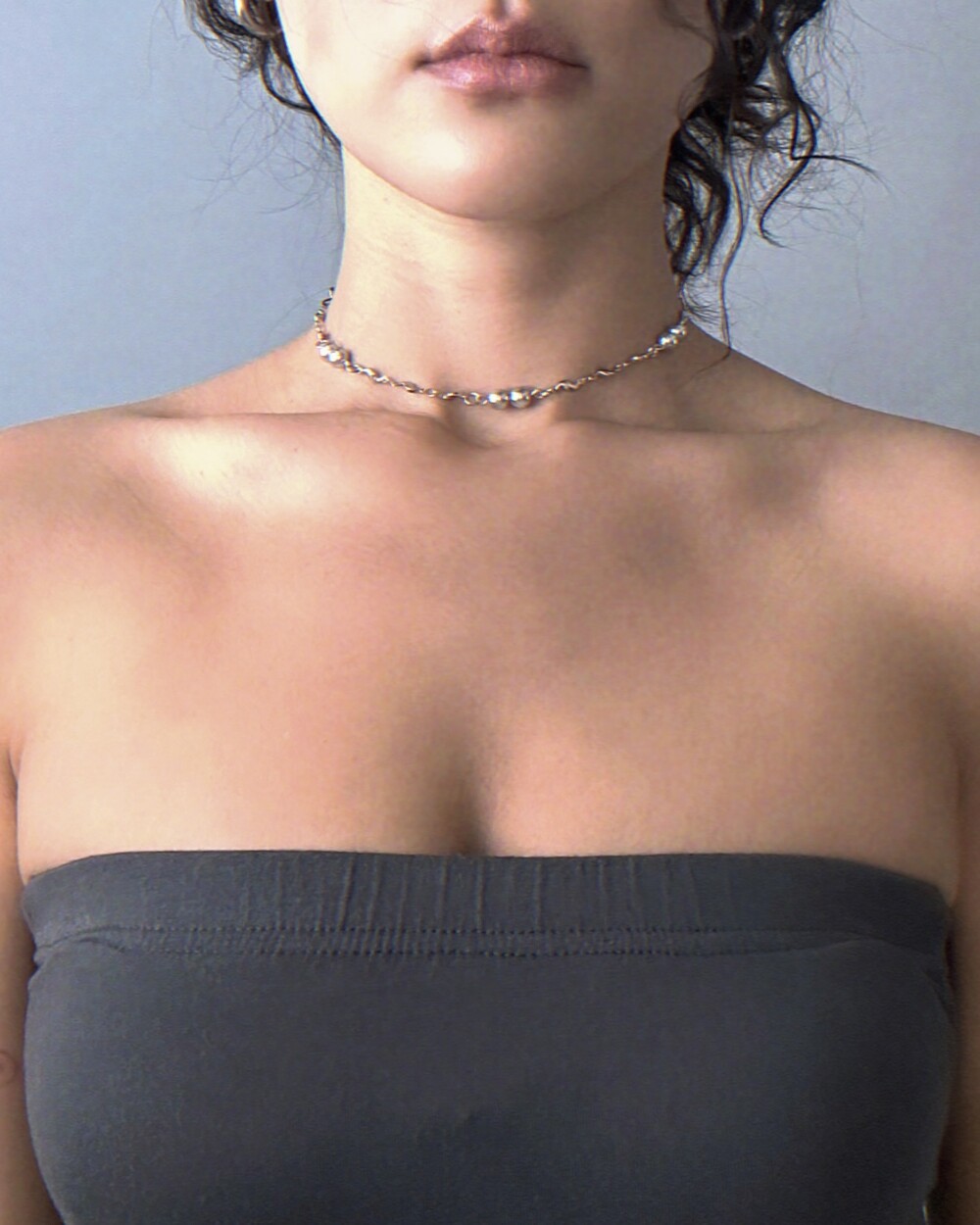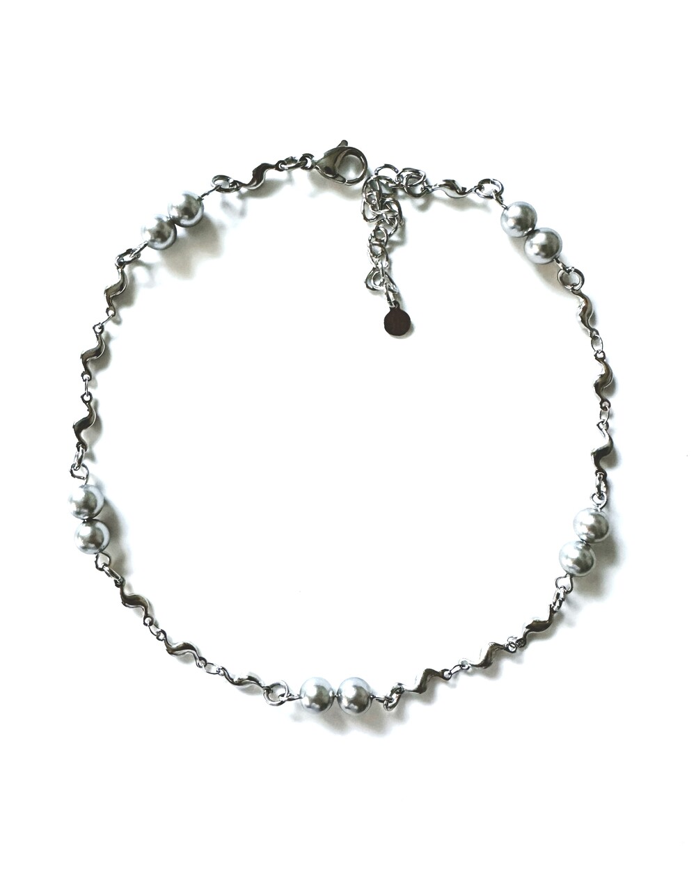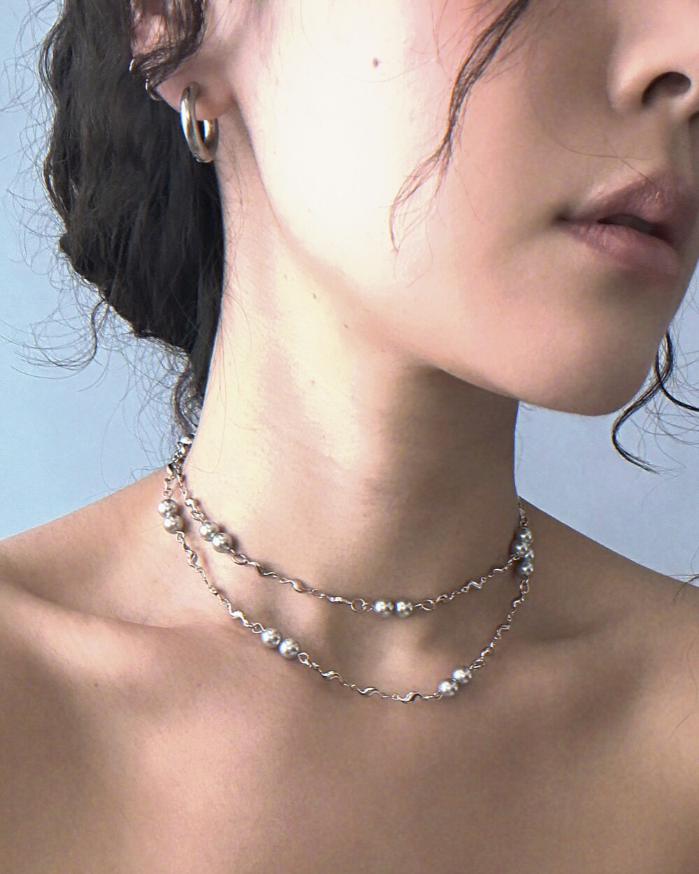 스테인리스 스틸 체인과 핵진주를 연결하여 디자인
