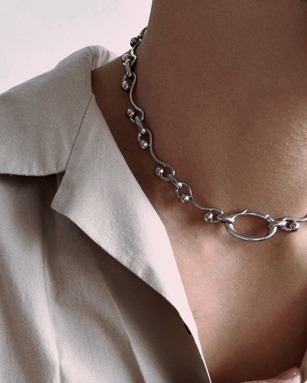 - 유니크한 체인의 쉐입이 멋스러운 네크리스
