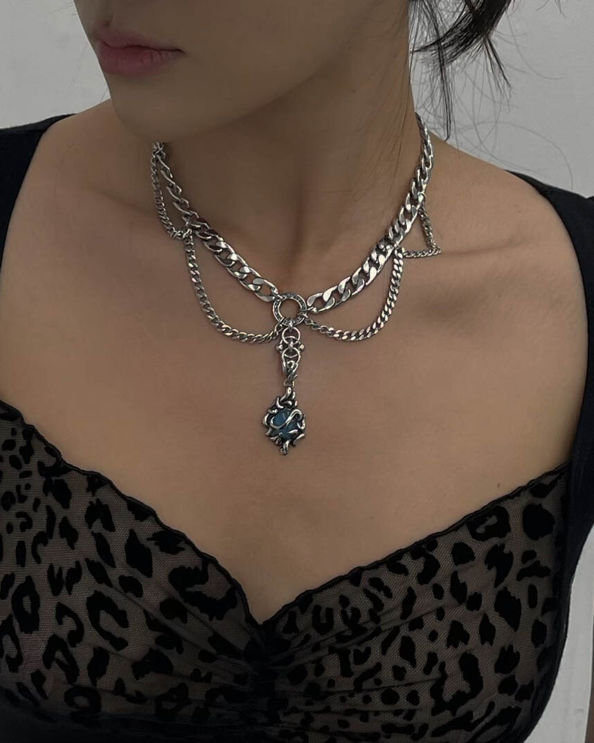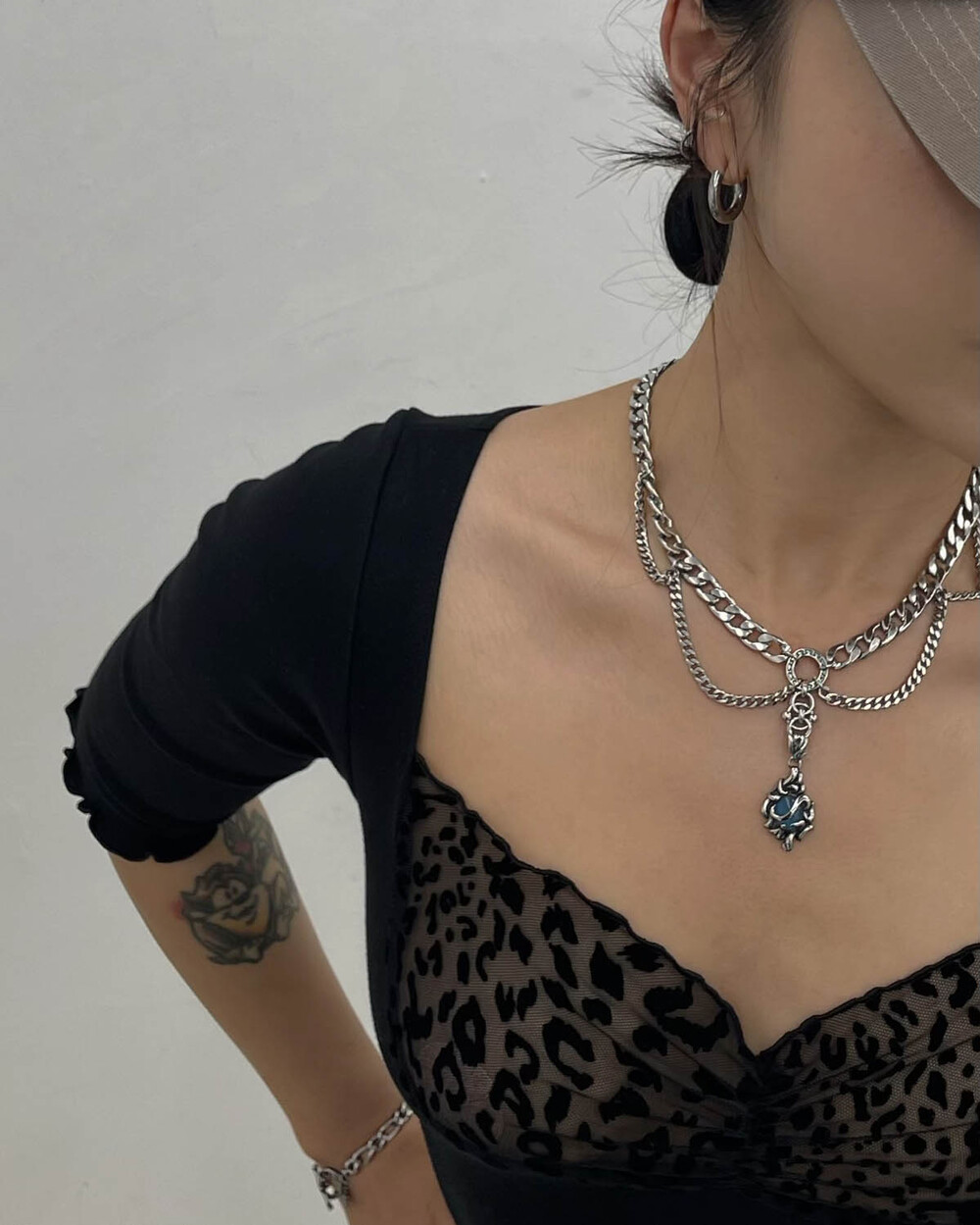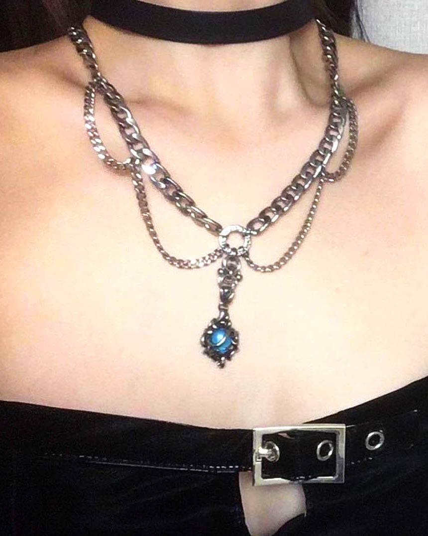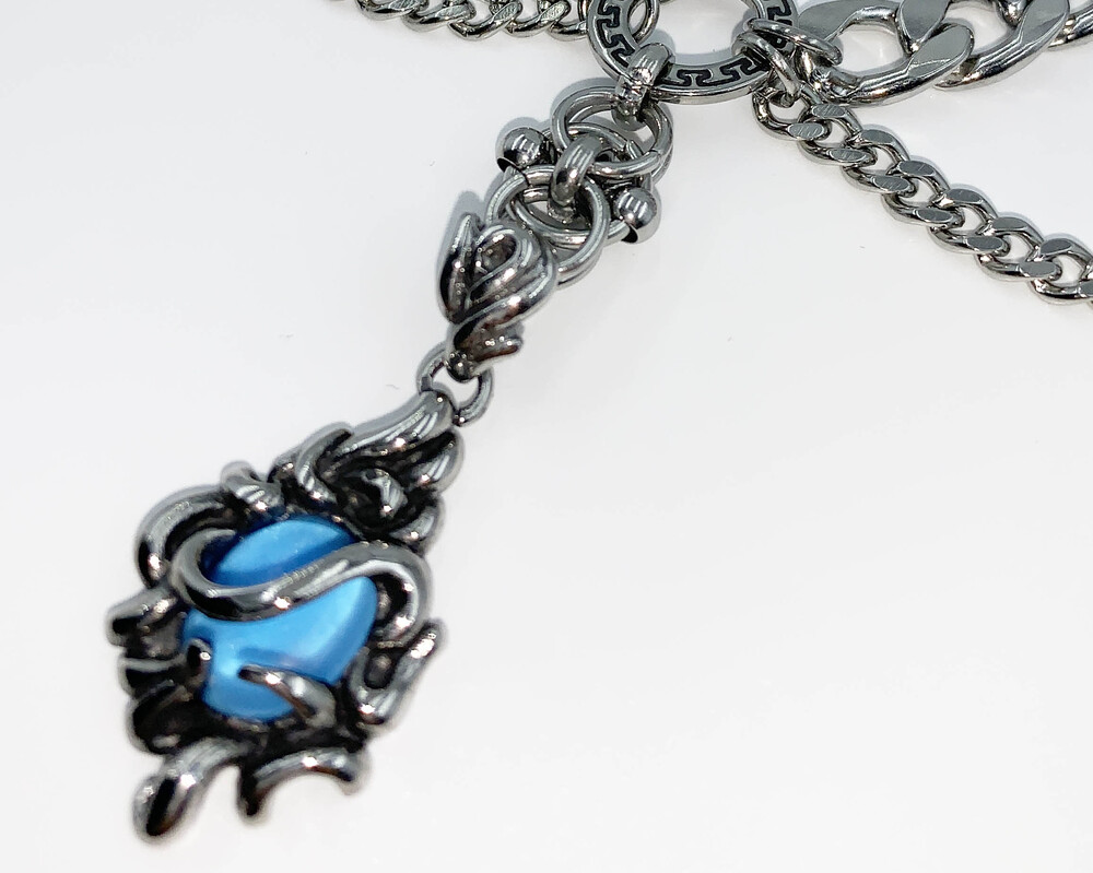 - 체인을 활용한 케이프 쉐입의 독특한 네크리스