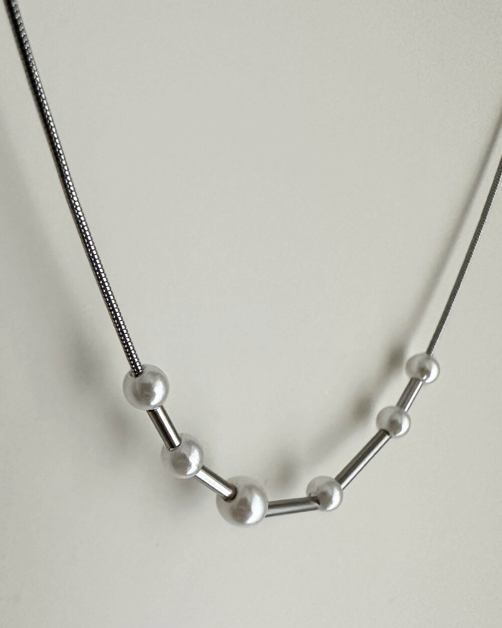 - 은은하게 빛나는 진주와 써지컬 소재의 파이프 참과의 조화