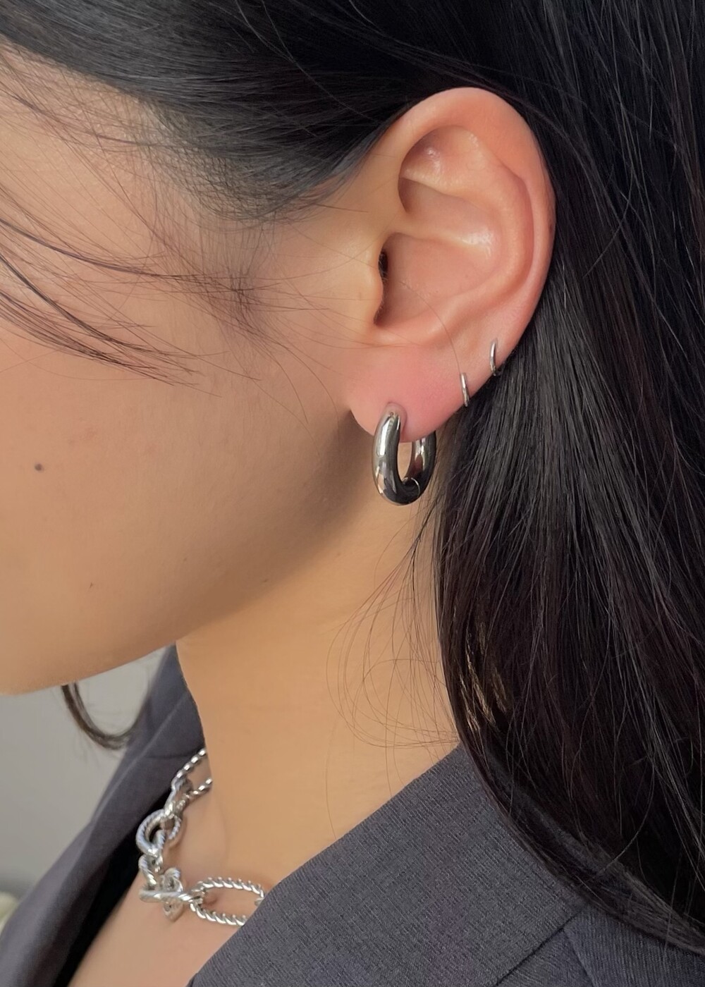 - 원터치 형식의 볼드한 써지컬 링 귀걸이